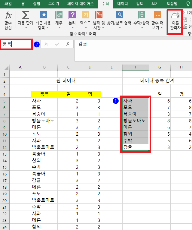 함수에서 자주 사용하는 범위를 이름 정의하면 수식 적을 때 편리합니다.